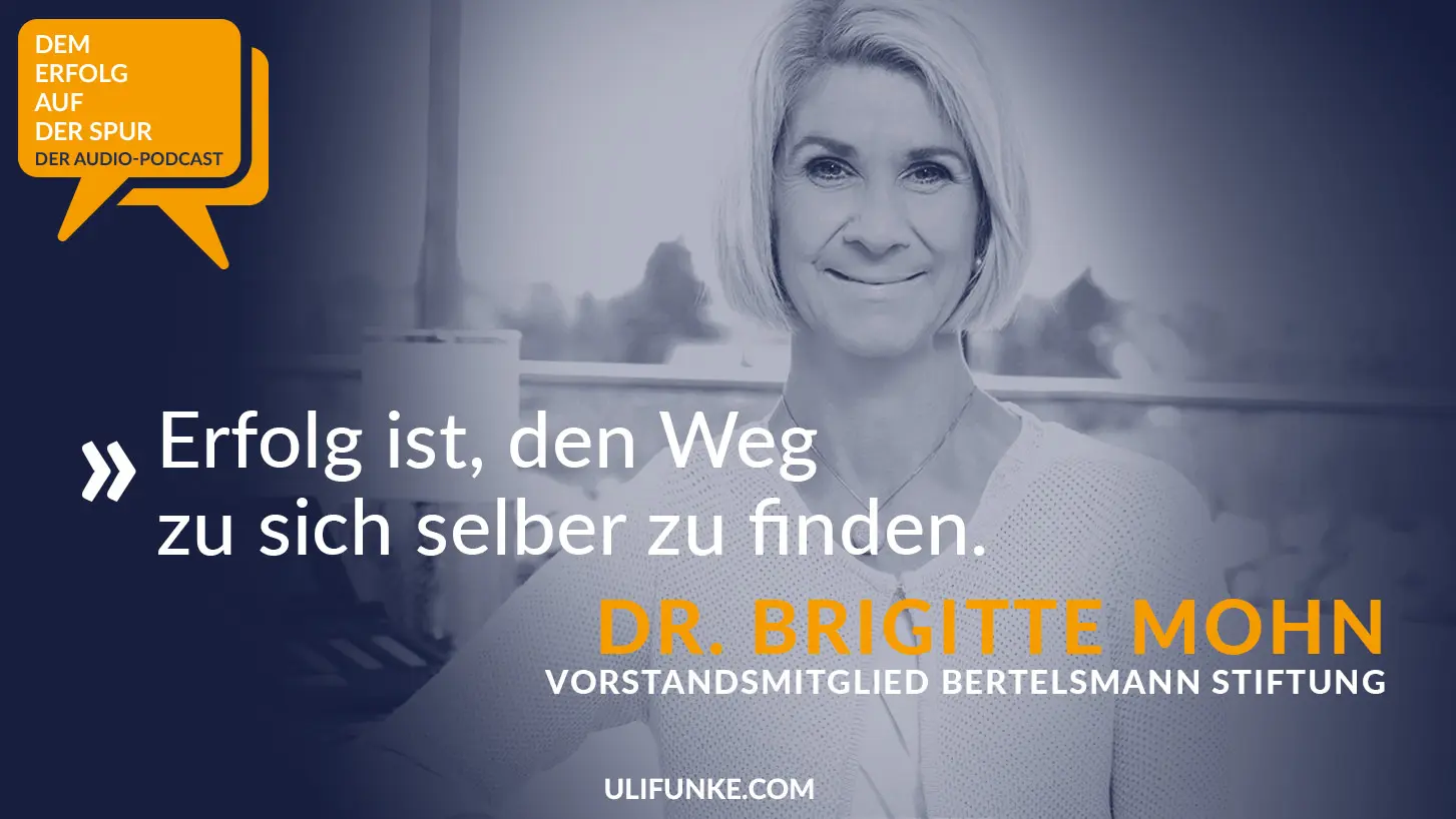Brigitte Mohn arbeitete unter anderem als Lektorin am Institut für Weltwirtschaft, als Marketing-Leiterin für „Academic Marketing“ der amerikanischen Verlage Bantam, Doubleday und Dell in New York sowie als Beraterin bei McKinsey in Hamburg und bei Pixelpark in der Schweiz. Im Jahr 2001 übernahm sie den Vorstandsvorsitz der Stiftung Deutsche Schlaganfall-Hilfe. 2002 wurde sie darüber hinaus als Leiterin des Themenfeldes Gesundheit in die Geschäftsleitung der Bertelsmann Stiftung berufen. 2002 wurde sie Mitglied im Aufsichtsrat der Rhön-Klinikum AG. Seit dem 1. Januar 2005 gehört sie dem Vorstand der Bertelsmann Stiftung an. Dr. Brigitte Mohn ist neben Ihrer Tätigkeit im Vorstand der Bertelsmann Stiftung auch bekannt für Ihren Einsatz in Sachen Existenzgründung. Sie hat sich intensiv mit der Bedeutung von ideellen Werten für Gesellschaft und Unternehmertum beschäftigt und setzt sich für einen Dialog der Generationen ein. Ihr vielschichtiges Interesse für unterschiedlichste Fachgebiete und ihre Erfahrung als Unternehmerin aber auch Unternehmens-Beraterin machen sie zu einer spannenden Gesprächspartnerin.